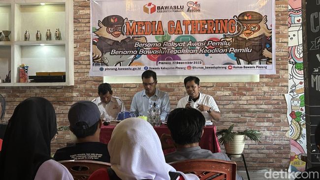 "Kami akan tindaklanjuti informasi awal (dugaan plt camat sebarkan foto pembagian baju caleg)" ujar Komisioner Bawaslu Pinrang Aswar pada acara media gathering, Rabu (27/12/2023).
