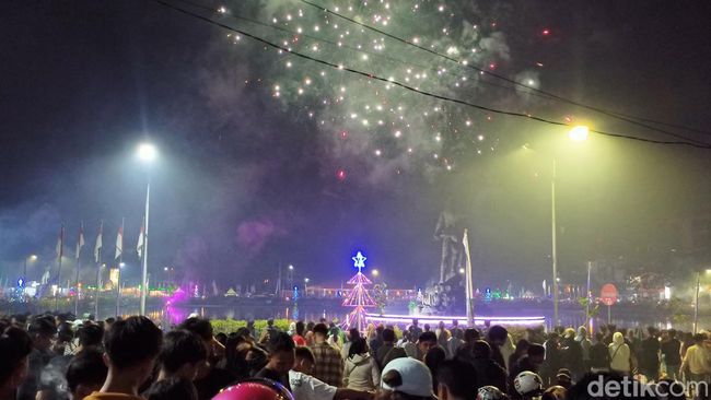 Pantauan detikSulsel di Bundaran Lakipadada Kota Makale, Tana Toraja, Minggu (31/12/2023) sekitar pukul 23.30 Wita, warga memadati sekitar lokasi tersebut. Warga tampak asyik menyaksikan pesta kembang api sembari menikmati jajanan pinggir jalan. Beberapa warga bahkan terlihat menggelar tikar dan duduk di pinggir jalan.