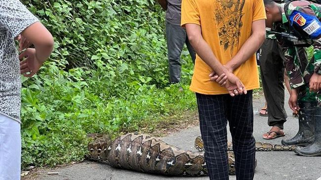 "Yang intinya dorang (mereka) temukan ini Ular dalam keadaan perutnya sudah besar. Posisi ularnya sedang berjalan di semak-semak di pinggir jalan," bebernya.