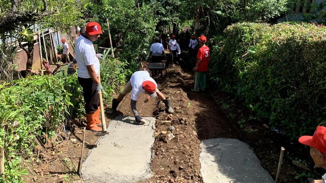 "Kegiatan yang kita lakukan adalah gotong royong atau kerja bakti bersama masyarakat untuk memperbaiki akses jalanan dari pemukiman masyarakat menuju keseharian aktivitas masyarakat yaitu bertani atau keperluan yang lain," ujar Rais dalam keterangan tertulis, Selasa (9/1/2024).