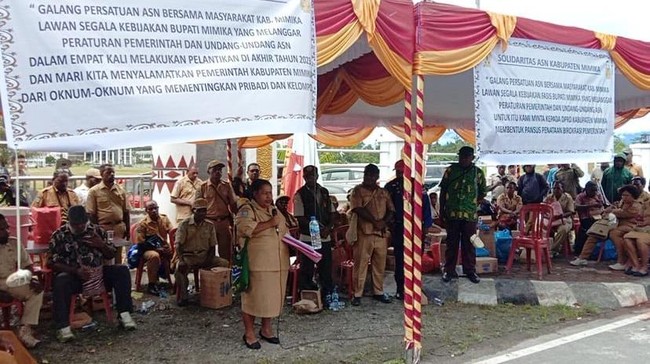 Aparatur sipil negara (ASN) di Kabupaten Mimika, Papua Tengah melakukan aksi demonstrasi dan mogok kerja. Mereka menuding Bupati Mimika Eltinus Omaleng merotasi jabatan tidak sesuai aturan.