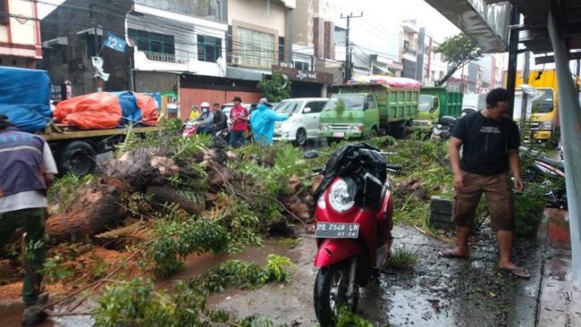 "Jadi beberapa pohon tumbang ini mengganggu lalu lintas karena tumbang menghalangi ruas jalan," ujarnya.
