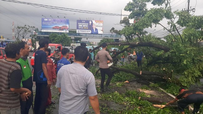 "Kena setengah jalanan itu tadi pas hujan tiba-tiba ada angin, langsung tumbang itu satu (pohon) kena ada sekitar 3 motor itu di bawahnya," kata Kapolsek Tamalanrea Kompol Andi Alimuddin kepada detikSulsel, Rabu (17/1/2024).