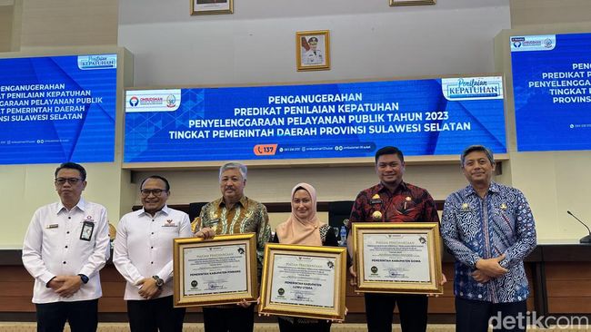 Ombudsman Sulawesi Selatan (Sulsel) mengumumkan rapor hasil penilaian kepatuhan pelayanan publik di 24 kabupaten dan kota di Sulsel. Ombudsman pun memberikan penghargaan kepada tiga instansi yang masuk kategori kinerja terbaik.
