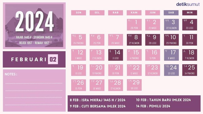 Berikut rincian daftar tanggal merah bulan Februari 2024: