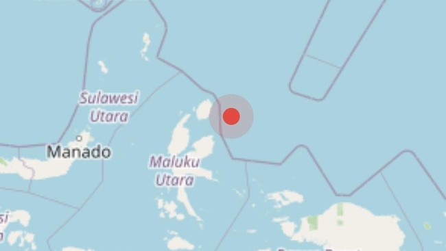 Badan Meteorologi, Klimatologi, dan Geofisika (BMKG) melaporkan gempa terjadi pada pukul 07.08 WIT. Titik koordinat gempa terjadi pada 0.91 lintang utara dan 126.41 bujur timur.