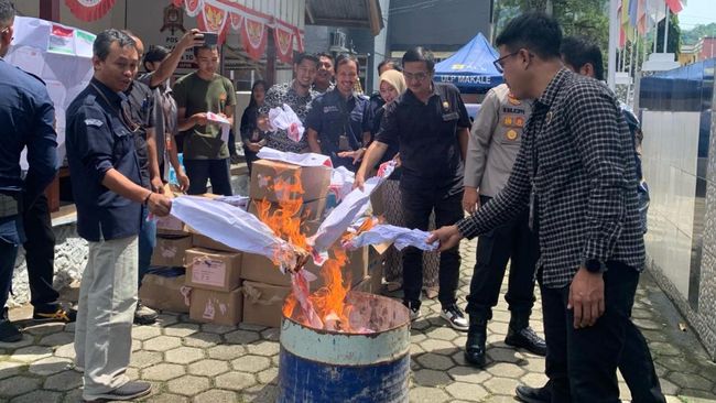 "Jadi kami musnahkan dengan cara dibakar, ini tentu untuk meminimalisir adanya tindakan kecurangan, karena kami juga komitmen menghindari upaya-upaya sesuatu yang tidak diinginkan," ujarnya.
