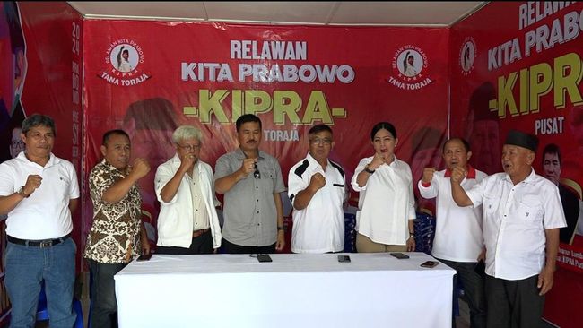 Ketua Tim Relawan Kita Prabowo (Kipra) Tana Toraja, Sulawesi Selatan (Sulsel), Darma Lelepadang mengklaim capres-cawapres nomor urut 2 Prabowo Subianto-Gibran Rakabuming Raka menang telak 70 persen. Capaian tersebut merupakan kerja keras tim relawan sebab Toraja merupakan kandang PDIP.