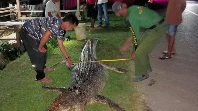 "Buaya ini berukuran panjang buaya 3,86 meter dengan lebar badan 60 sentimeter," ujar Kepala Seksi Konservasi Wilayah I Balai Konservasi Sumber Daya Alam (BKSDA) Sultra Laode Kaida dalam keterangannya, Senin (4/3/2024).