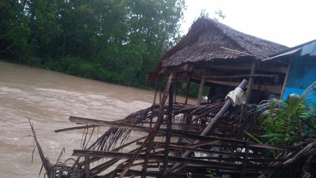 Banjir akibat luapan sungai menerjang pemukiman warga di Kabupaten Buol, Sulawesi Tengah (Sulteng). Sebanyak 40 rumah warga dilaporkan terendam banjir, sementara 2 rumah yang berada di pinggir sungai hanyut.