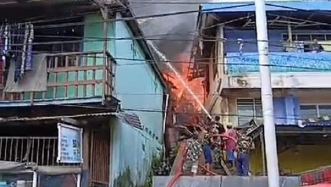 Kebakaran menghanguskan sebuah rumah dan 11 kamar kos di Kota Jayapura, Papua. Insiden tersebut turut menewaskan satu orang bernama Sutrisno (50).