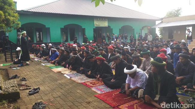 Tampak para jemaah laki-laki berada di pelataran masjid dengan pakaian gamis dan sorban. Sementara jemaah perempuan berada di dalam dalam Masjid Al Muqaddis juga mengenakan pakaian khas hitam.