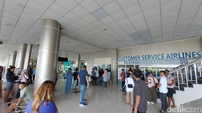 Salah satu satu penumpang pesawat asal Madura, Efendi terpaksa membatalkan penerbangannya ke Surabaya imbas penutupan bandara. Dia pun mengantre bersama penumpang lain untuk mengatur penjadwalan ulang penerbangan.