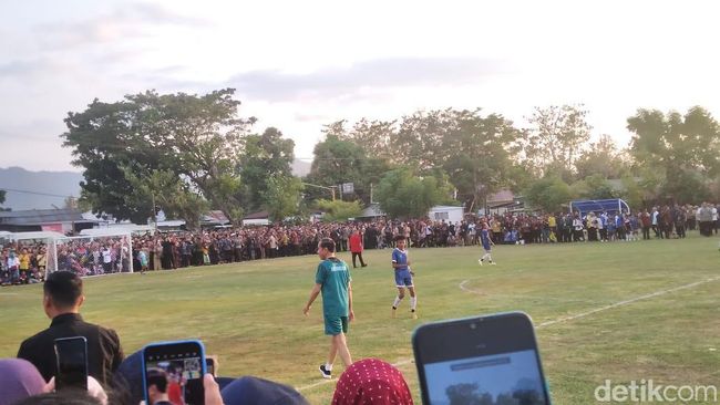 Pantauan detikcom, Minggu (21/4/2024) sore, Jokowi ikut bermain bola di Lapangan Liluwo, Kecamatan Kota Tengah, Kota Gorontalo. Jokowi menggunakan jersey warna dan celana hijau dengan tulisan 'Indonesia' di punggungnya.