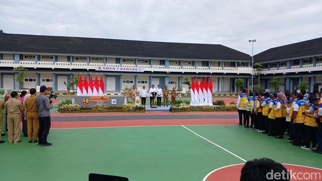 "Saya melihat di SMK 1 Rangas ini, bangunannya baik ndak, dibanding yang sebelumnya lebih baik atau lebih bagus?" tanya Jokowi di hadapan para siswa.