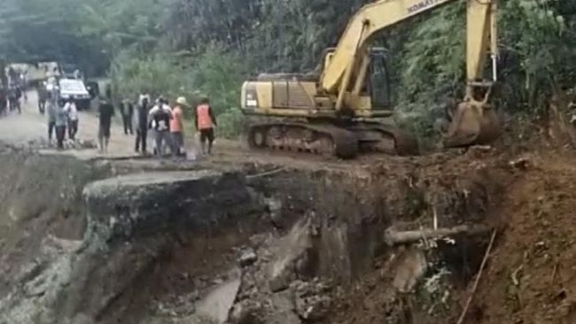 Jalan Trans Papua di Kabupaten Nabire, Papua Tengah, amblas hingga tidak bisa dilalui kendaraan. Alat berat pun dikerahkan ke lokasi kejadian untuk membuat jalur alternatif.