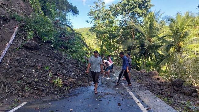 Jalan penghubung antardesa di Kecamatan Sinjai Timur, Kabupaten Sinjai, Sulawesi Selatan (Sulsel) tertimbun longsor. Badan Penanggulangan Bencana Daerah (BPBD) Sinjai pun tengah mengupayakan alat berat dikerahkan untuk membersihkan material longsor di dua titik.