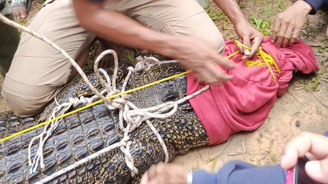 "Buaya ini kan kelemahannya di mata, jadi korban colok lah mata buayanya dengan tangan kiri, karena terancam akhirnya buaya itu melepaskan," terangnya.