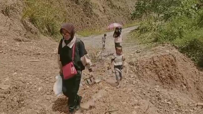Sebanyak 10 warga Desa Buntu Sarek di Kabupaten Luwu, Sulawesi Selatan (Sulsel), nekat meninggalkan rumah dan berjalan kaki selama 7 jam sejauh 35 kilometer menuju ke posko pengungsian. Warga mengaku kehabisan stok makanan untuk anak kecil setelah 6 hari terjebak longsor di wilayahnya.