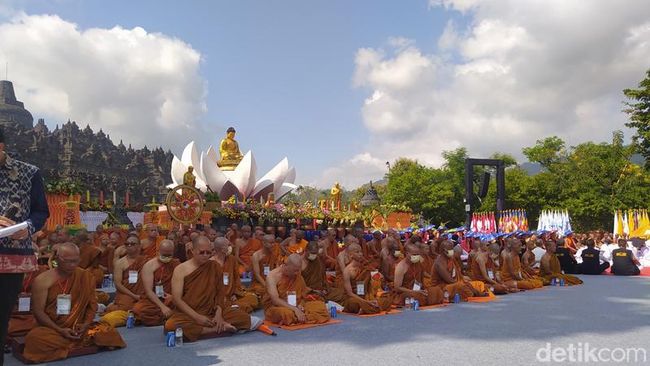 - Pukul 16.00 - 17.00 WIB: Para Sangha & Umat Peserta naik ke Struktur Candi untuk Pradaksina Keliling Candi Borobudur