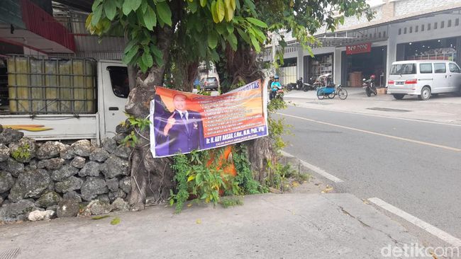APK terpaku di pohon juga terdapat di beberapa ruas jalan lainnya, termasuk di sekitar Pasar Sentral Bonea, Benteng. Namun, APK itu terpasang hanya di titik-titik tertentu.