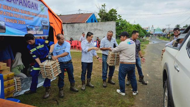 Bantuan tersebut salah satunya diserahkan pihak Kementerian ESDM dan PT Indo Tambangraya Megah (ITM) pada Kamis (24/5). Bantuan itu antara lain 118 boks air mineral, 460 kg beras, 220 liter minyak goreng, 100 kaleng sarden, 103 boks mie instan, 50 kilogram gula, dan 12 rak telur.