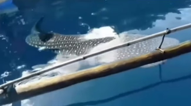 Dalam video beredar, terlihat hiu paus tersebut mendekati sejumlah perahu nelayan. Ikan tersebut tampak berputar-putar di sekitar perahu.