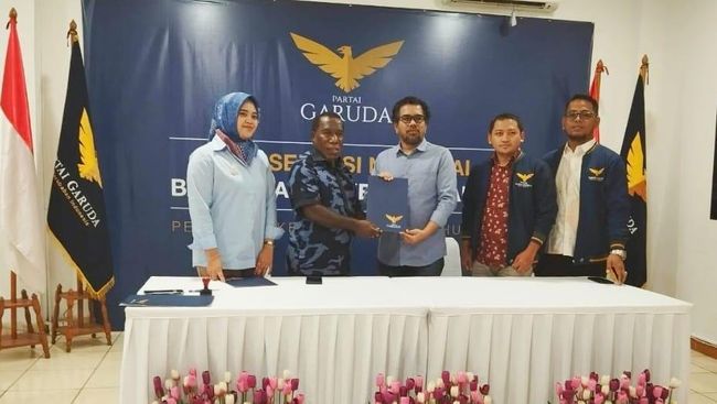 Rekomendasi itu diserahkan Ketua Korwil Papua Raya DPP Partai Garuda Jeffry Yuliyanto Waisapy di Kantor Partai Garuda, Jakarta, Jumat (7/6). Edison mengaku siap bertarung untuk kemajuan Nduga.