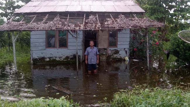 "Ada sekitar 21 rumah yang sampai sekarang masih tergenang air. Jadi saat (tanggul) jebol kan air langsung meluber keluar. Sudah sekitar satu minggu ini tergenang air," ujar warga Transmigran Maidi, Arianto Abd Rajak kepada detikcom, Senin (17/6).
