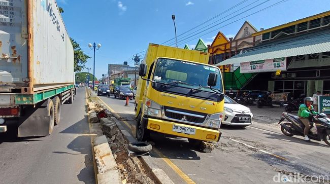 Sebuah truk boks mengalami pecah ban belakang hingga terbalik di daerah Maccopa, Jalan Poros Makassar-Maros, Kabupaten Maros, Sulawesi Selatan (Sulsel). Akibatnya, arus lalu lintas (lalin) macet sepanjang 3 kilometer (Km).