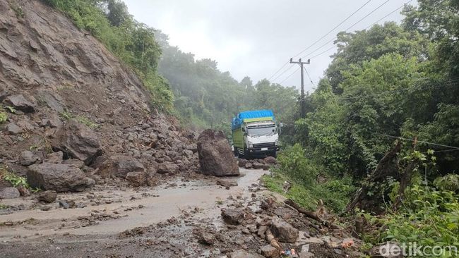 "Untuk arus lalu lintas terputus total tidak bisa diakses sama sekali karena ada batu besar di tengah jalan. Butuh waktu untuk mengevakuasi material longsor ini," bebernya.