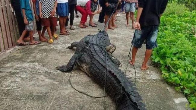 "Selang waktu sekitar 30 menit, buaya tersebut berhasil ditangkap dengan menggunakan jerat," ungkap Mustarim.