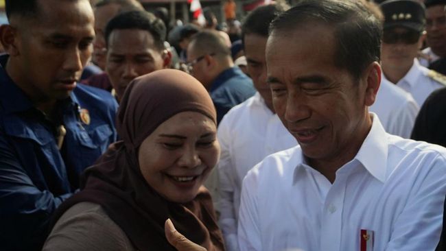 Jokowi menyusuri lorong-lorong pasar tradisional tersebut didampingi Ibu Negara Iriana pada Jumat (5/7/2024) pagi. Para pedagang menyambut meriah kedatangan Jokowi.
