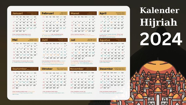 - Minggu, 7 Juli 2024: 1 Muharram 1446 H