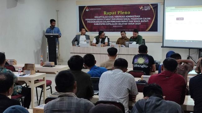 "Status verifikasi administrasi perbaikan kedua pasangan calon dinyatakan memenuhi syarat dan selanjutnya dapat mengikuti tahapan verifikasi faktual kedua," ujar Koordinator Divisi Sosialisasi, Pendidikan Pemilih, Partisipasi Masyarakat, dan SDM KPU Selayar, Muhamad Arsat, saat membacakan potongan berita acara dalam rapat pleno di Hotel Rayhan Square, Selayar, Minggu (28/7/2024) malam.