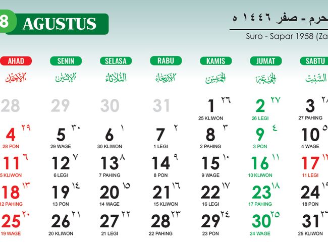 Untuk lebih lengkapnya, berikut kalender Hijriah Agustus 2024 lengkap dengan jadwal puasa dan waktu sholat.