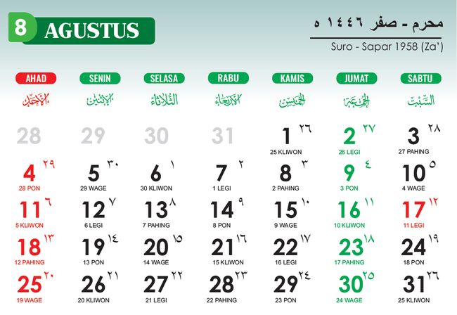 - 5 Agustus 2024: 30 Muharam 1446 H