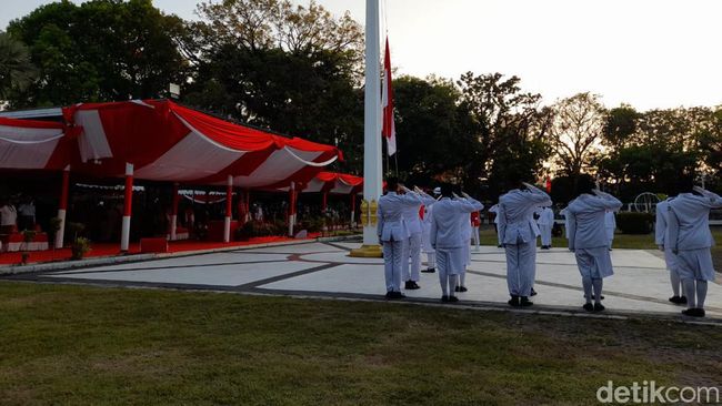 Pantauan detikSulsel di lapangan upacara rumah jabatan Gubernur Sulsel, Jalan Jenderal Sudirman, Makassar, Sabtu (17/8/2024), upacara dimulai sekitar pukul 17.30 Wita. Upacara dimulai dengan laporan komandan upacara Letkol Laut Marinir Yusman Efendi kepada inspektur upacara.