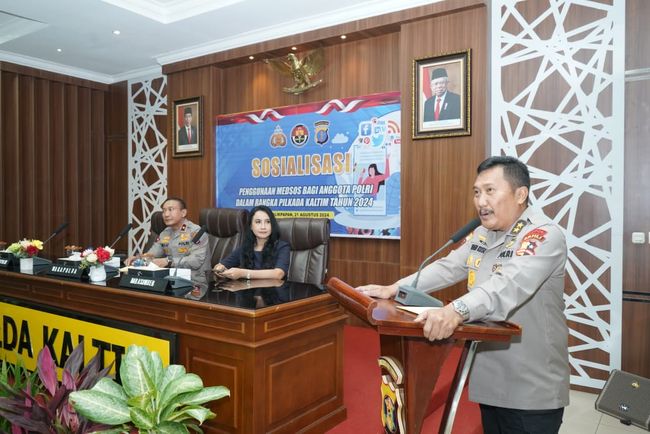 Polda Kalimantan Timur (Kaltim) menggelar sosialisasi bertajuk 'Pemahaman Penggunaan Media Sosial bagi Anggota Polri dalam Rangka Pilkada Kaltim 2024'. Hal ini dilakukan guna memperkuat pemahaman dan penggunaan media sosial secara bijak di kalangan anggota Polri.