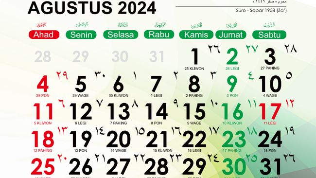 Untuk lebih jelasnya, berikut rincian kalender Hijriah sepanjang bulan Agustus 2024:
