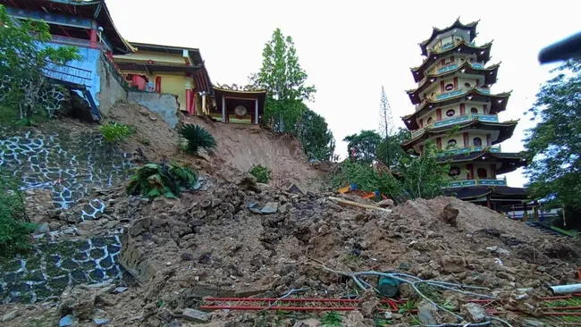 "Jika turun hujan lebih dari satu jam maka warga yang bermukim di wilayah lereng tebing segera bergegas menuju ke tempat yang lebih aman guna menghindari potensi longsor susulan," imbuh Muhari.