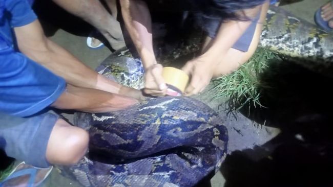 "Dari situ kami langsung menangkap ini ular kemudian kami ikat pakai tali dan kami latban kepala ular, pas kami angkat ternyata besar ini ular. Bisa 1 jam kami tangkap itu ular," bebernya.