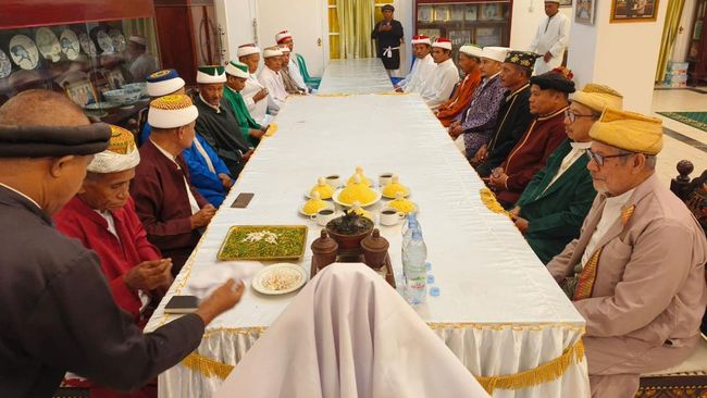 "Jadi ritual Sou Gam ini berupa tahlilan dengan menyiapkan nasi kuning dada sebanyak tujuh piring di atas meja, lalu dibacakan doa tolak bala," ujar Rizal.