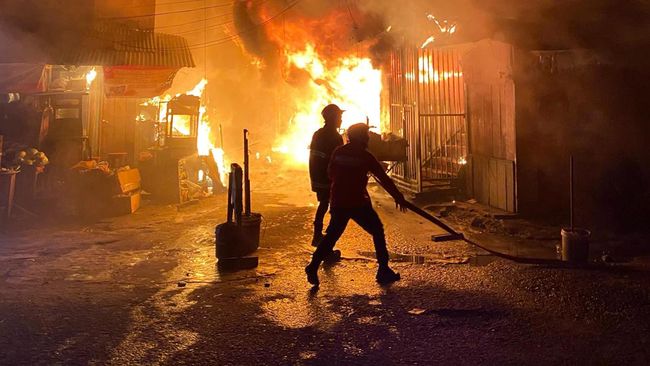 Kebakaran melanda rumah toko (ruko) di Pasar Mardika Ambon, Maluku. Sebanyak empat ruko hangus terbakar dalam insiden yang diduga terjadi akibat korsleting listrik.