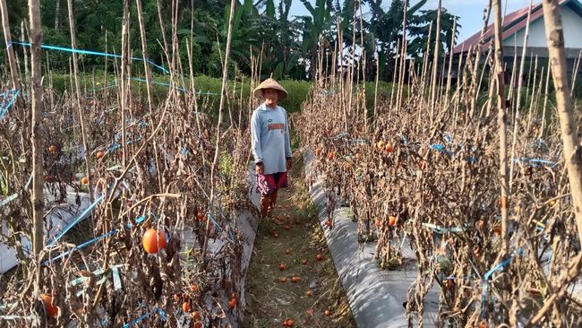 "Kita sengaja biarkan tomat mengering lalu membusuk di kebun karena kalau dijual dengan harga Rp 1.000 per kilogram kita rugi," kata petani tomat Desa Seti Bakti, Sukanto (43) kepada detikcom, Jumat (6/9/2024).