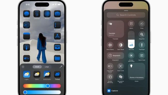 Tidak hanya ikon pada home screen, pengguna juga bisa melakukan kustomisasi pada control center atau bilah notifikasi. Pada iOS 18, control center didesain lebih agar penggunaannya lebih fleksibel.
