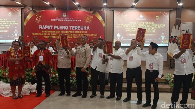 KPU Kabupaten Sorong Selatan (Sorsel), Papua Barat Daya, menetapkan nomor urut untuk lima pasangan calon (paslon) bupati dan wakil bupati. Para paslon di Pilkada Sorong Selatan selanjutnya akan menjalani tahapan masa kampanye.