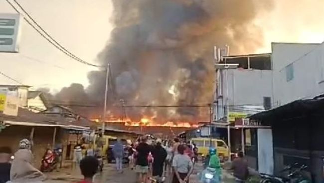 "Petugas yang dibantu warga berupaya keras memadamkan kobaran api yang semakin besar. Akses menuju lokasi kebakaran terhambat karena padatnya pasar dan para pedagang yang berusaha menyelamatkan barang dagangan mereka," katanya.