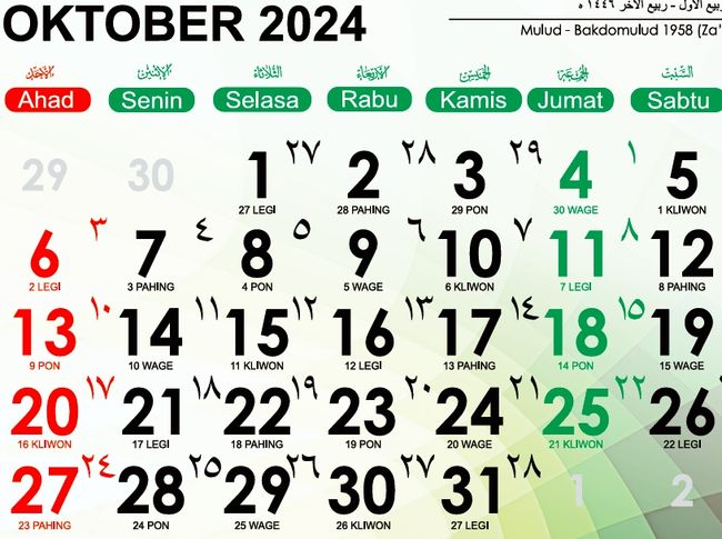 Agar lebih jelas, berikut rincian penanggalan Hijriah sepanjang bulan Oktober selengkapnya: