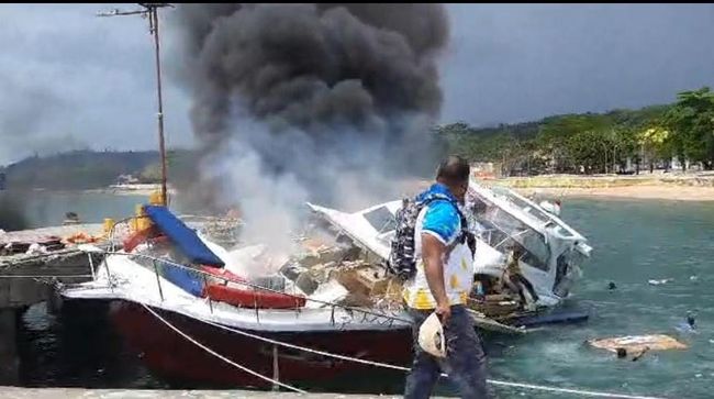 "Tiba-tiba terjadi ledakan dan disertai kobaran api yang menghanguskan seluruh body speedboat," beber Ali.